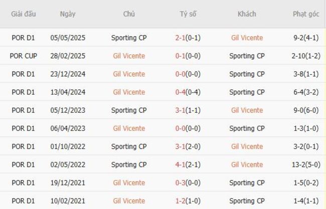 Thành tích đối đầu quá khứ giữa Gil Vicente vs Sporting CP