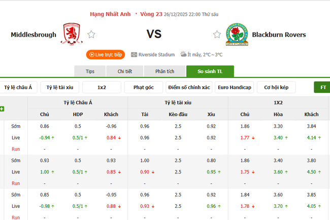 Trên đây là những nhận định và soi kèo bóng đá chuyên sâu cho màn thư hùng giữa Middlesbrough vs Blackburn Rovers diễn ra vào lúc 22h00 ngày 26/12/2025.