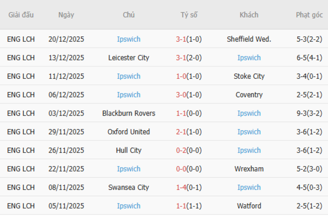 Phong độ của Ipswich Town