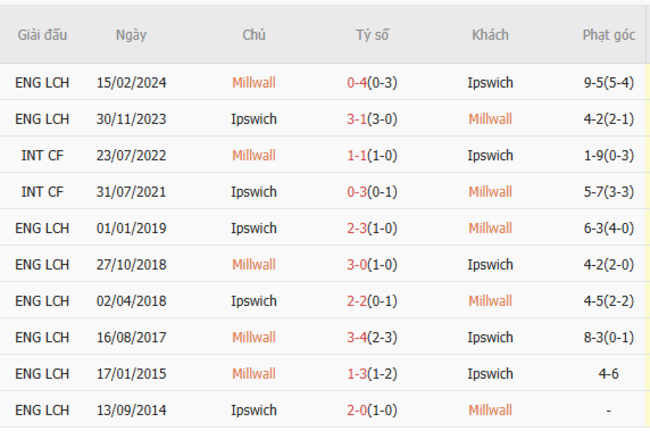 Tỷ lệ kèo Millwall City vs Ipswich Town