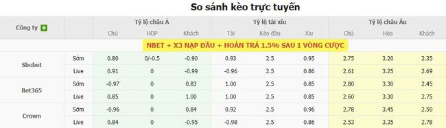 - Chọn kèo: Lens -0.25 và Xỉu 2.5