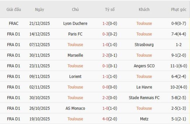 Tỷ lệ kèo Toulouse vs Lens